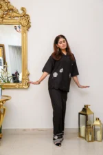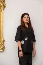Elegant black cotton dress offering versatile style and everyday comfort.